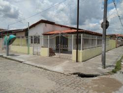 Casa com área na frente, lateral e fundo, sala de estar, sala de jantar, cozinha, 3/4, cozinha, banheiro social e areia de serviço.